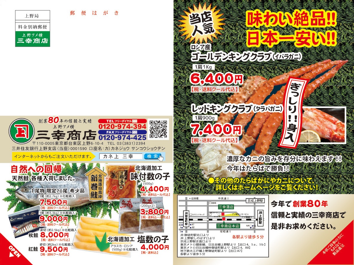アメ横で売上No.1!!「蟹の三幸」のたらばがにをオンラインショップだけの大特価で!!